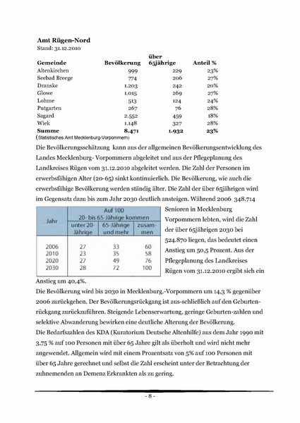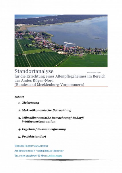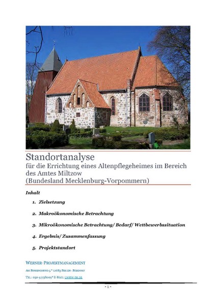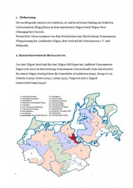 Dabei werden die Pflegesituation, die makro- und mikroökonomische Situation beschrieben. Es werden die Wettbewerbssituation, der Bedarf in eiem Ergebnis zu dem Projektstandort ermittelt.