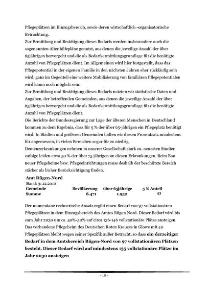 Der festgestellte und nachgewiesene Bedarf an Pflegeplätzen ist die Grundlage für die